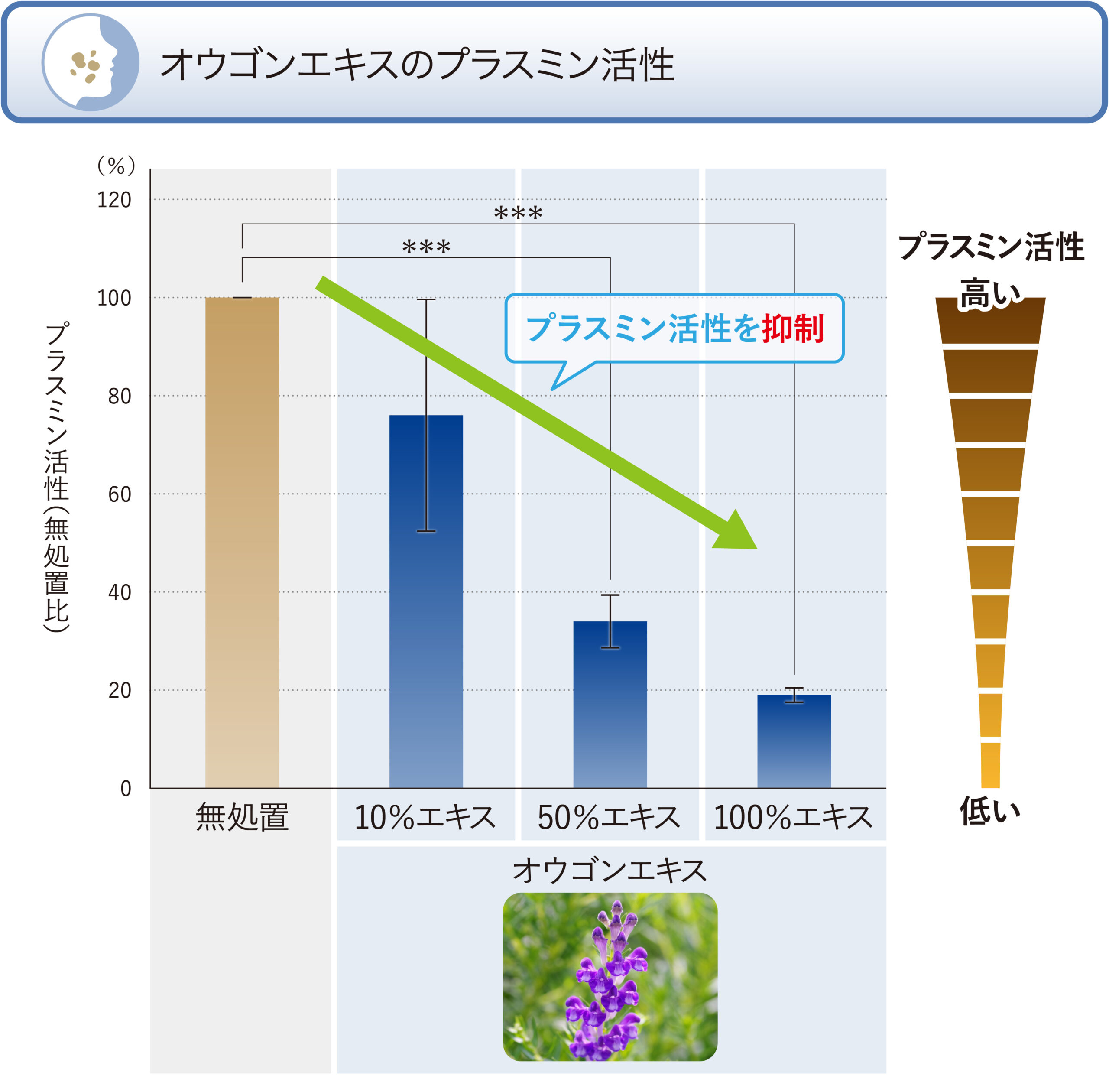 4. オウゴンエキス・ウコンエキスはプラスミン活性を抑え、シミ予防効果を発揮することを確認