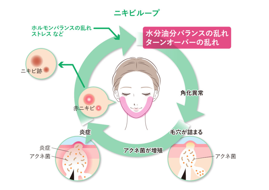 また、たまった皮脂は、ニキビの原因菌であるアクネ菌のエサになります。